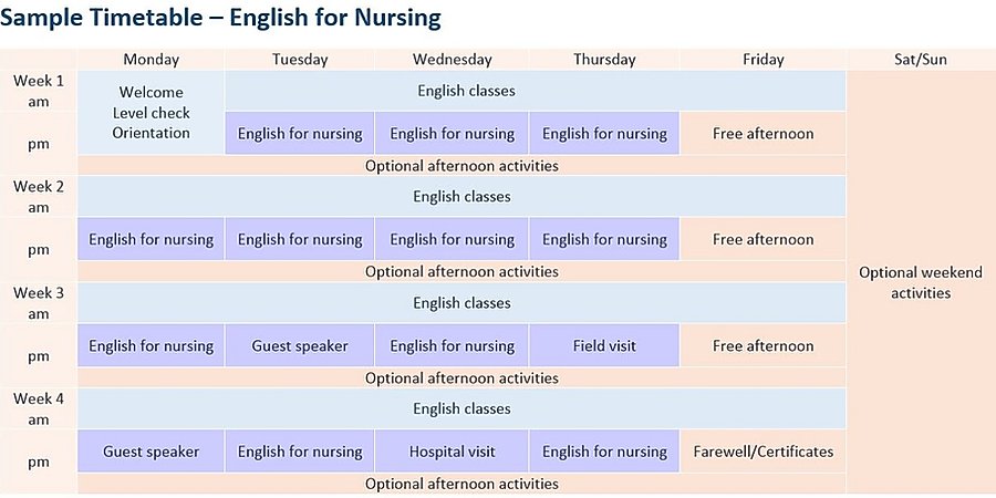 - English for Nursing (sample timetable)